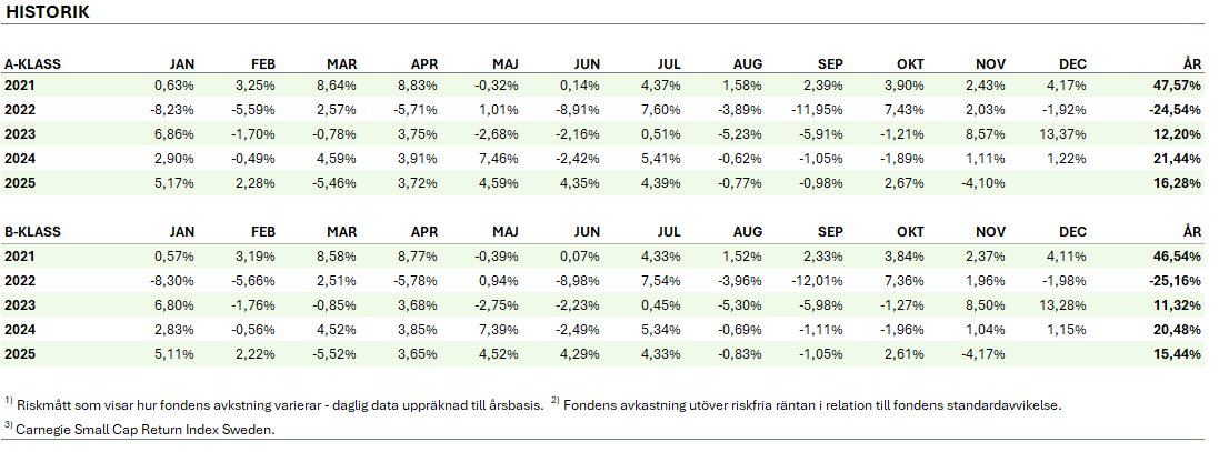 AKTIVITETSGRAD OCH JÄMFÖRELSEINDEX: Fonden är en aktivt förvaltad specialfond med koncentrerade innehav och särskilt definierad placeringsinriktning, för vilken det för närvarande saknas indexproducenter som tillhandahåller ett relevant index. Fonden har därför inget relevant jämförelseindex.